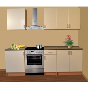 Лаконичный кухонный гарнитур цвета "Жемчуг". Компактный, простой и удобный набор мебели, с вместительными системами хранения. Стильные светлые панели помогут визуально увеличить небольшое помещение. Практичная рабочая поверхность в контрастном цвете дополнит интерьер.